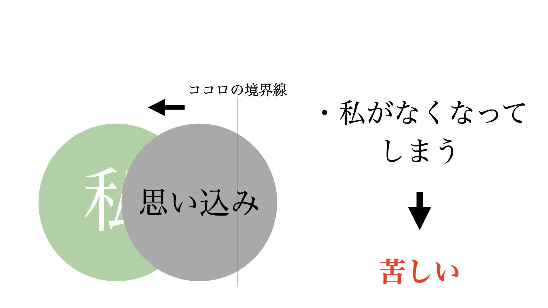 これは、ココロの境界線が弱く、自分境界線の内側にこの「思い込み」を引き入れて、
